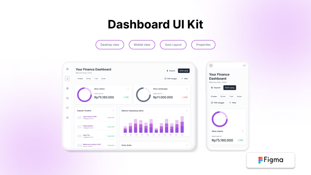 Simple Dashboard UI Kit is a versatile and modern template designed to streamline your workflow, making it easy to create beautiful, responsive dashboards for desktop and mobile platforms. This UI kit is packed with features to enhance your design process and deliver a seamless user experience.